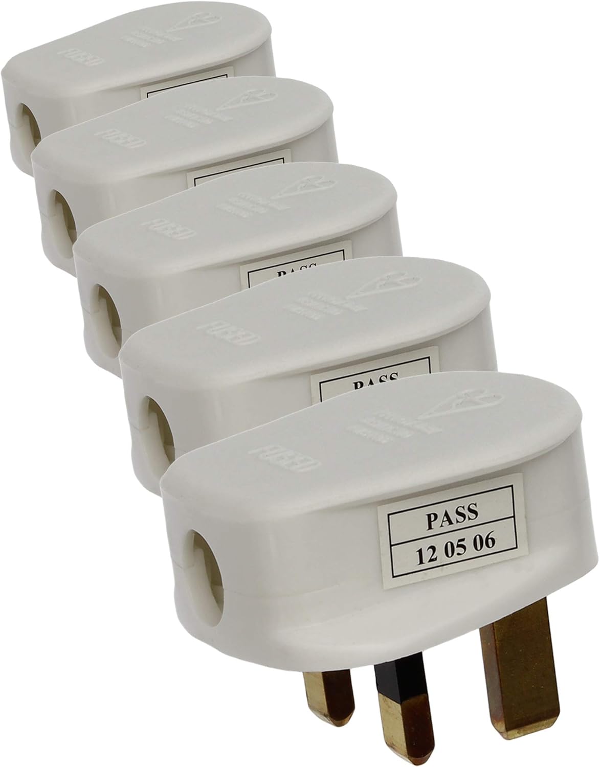 1STec Pack of 5 x 3A Fused White UK Mains Power Plug Top with 3 Pin Rewirable Screw Terminals for Connecting Appliance Cable to Home Wall Socket Housing Standard 3 Amp Cylinder Type Fuse (5 x 3A)