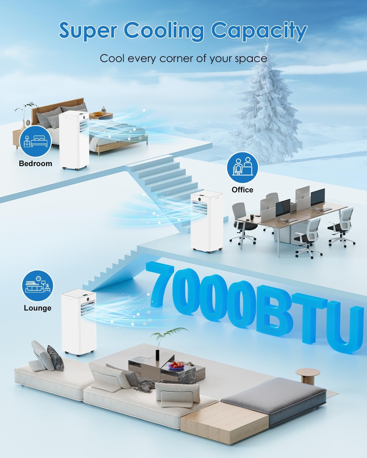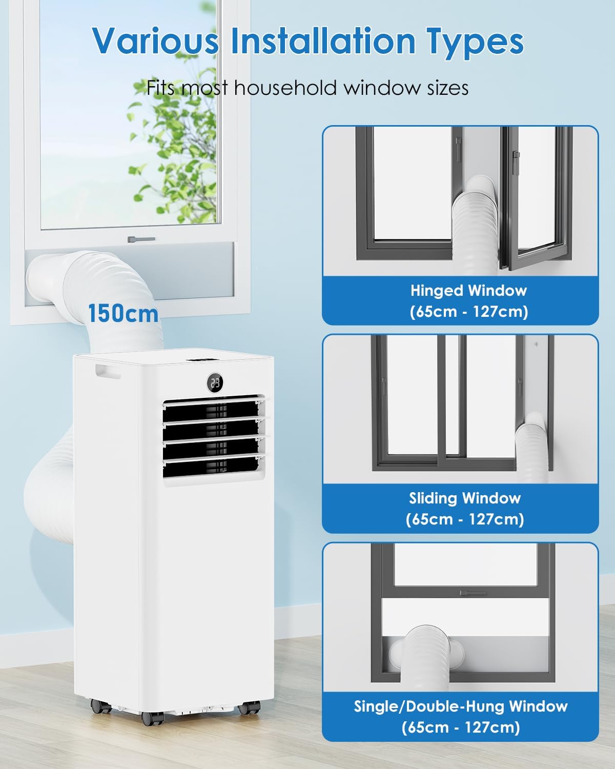 Air Conditioning Unit, 7000BTU Air Conditioner with 2 Control Ways, Digital Display, Installation Kit, Low Energy, 1-24 H Timer, 4 IN 1 Ventilation Conditioning Cooling Modes for Room up to 25m²