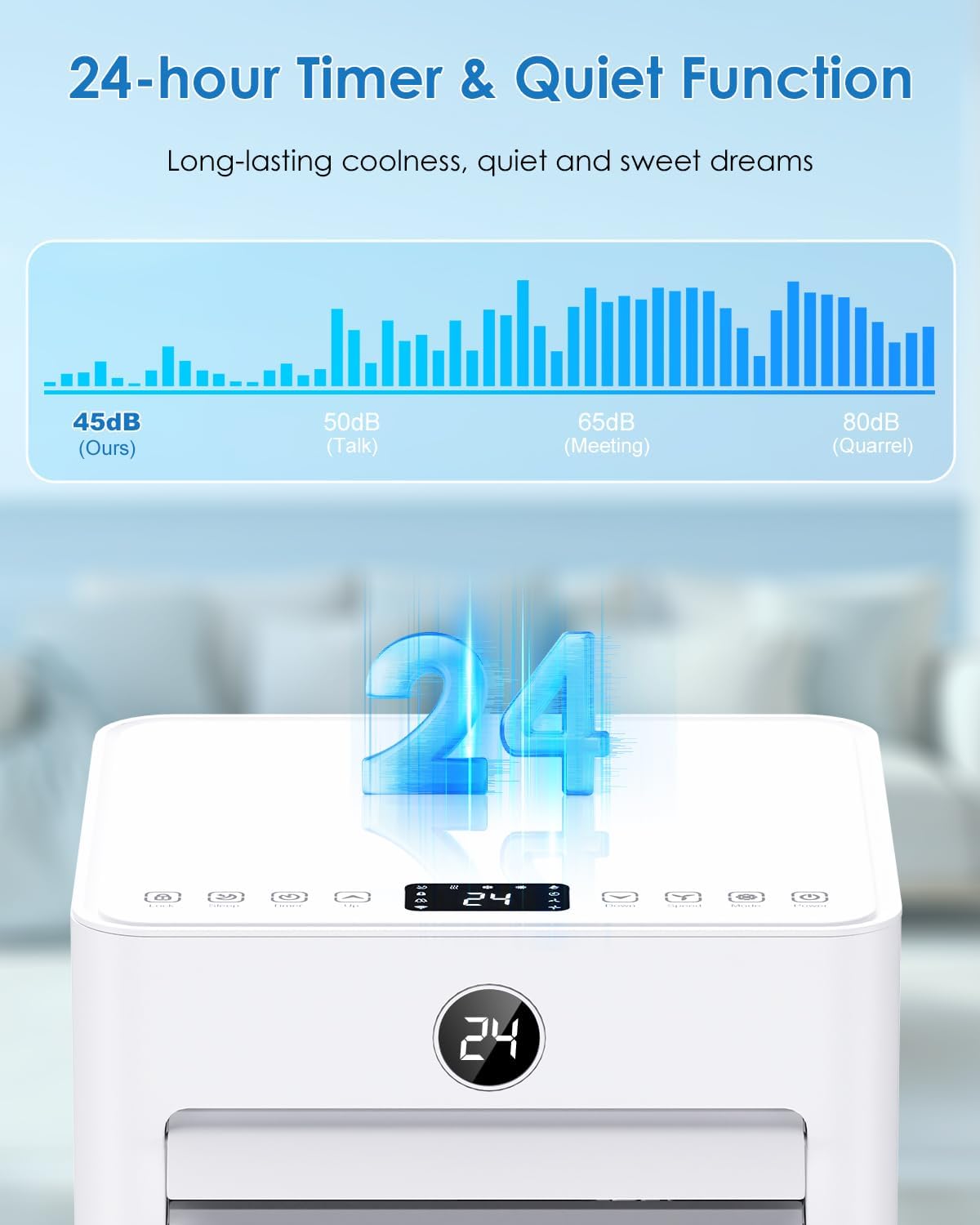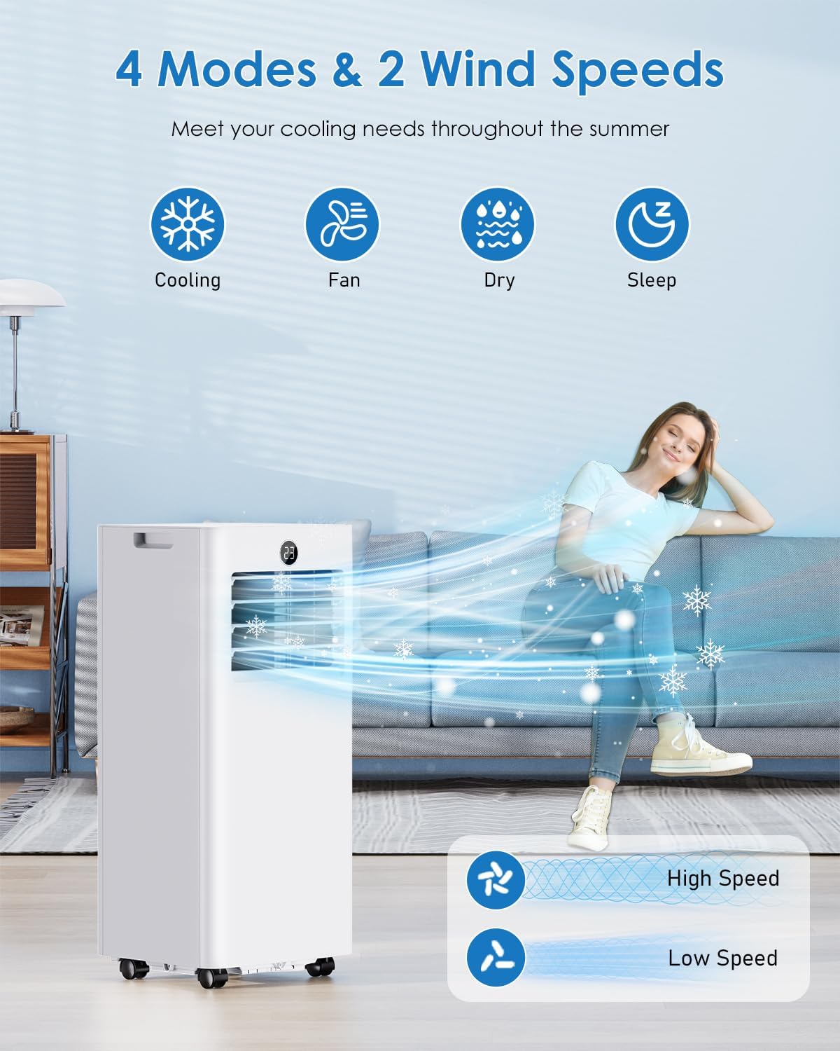 4 Modes Selection: Cooling mode cools your large room in hot weather conditions; Fan mode provides powerful airflow; Dehumidification mode dehumidifies the air and keeps the room humidity around 50%. Silent mode operates quietly with effective cooling.