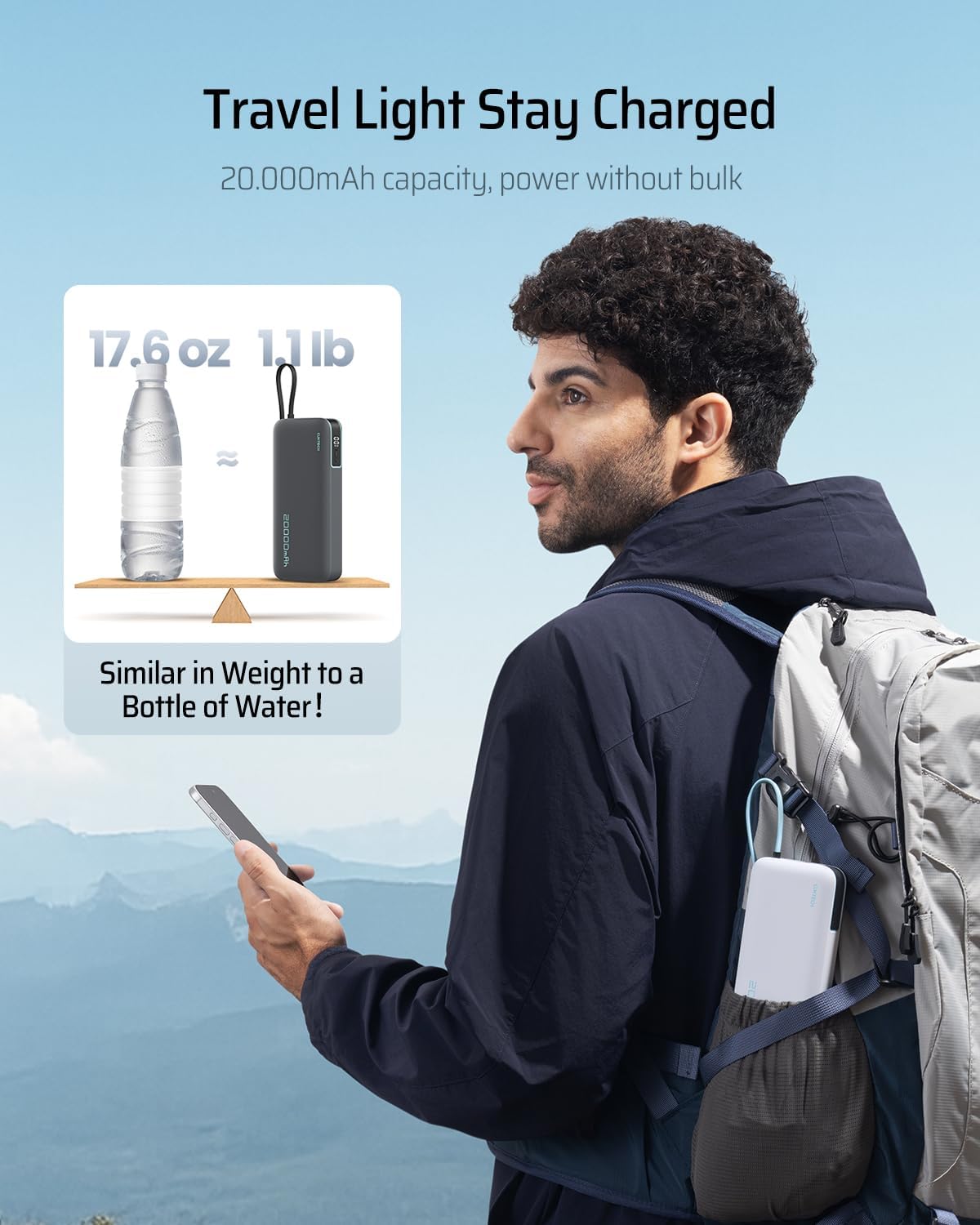 20,000mAh Power Bank Large Capacity: CUKTECH CP253L 20000mAh portable charger provides ample power for multiple charges. It can charge an iPhone 15 up to 3.9 times, a Samsung S24 Ultra 2.9 times, an iPad Air 1.9 times, or a MacBook Air 1.2 times. perfect for extended travel and long days