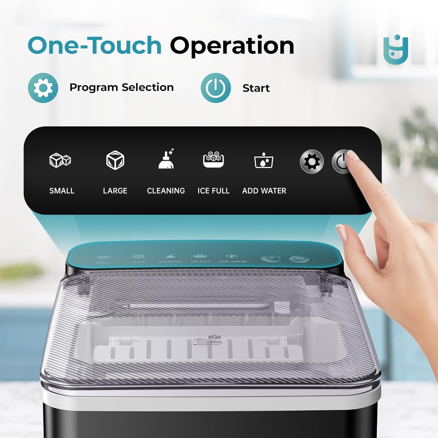 Smart Ice Making: The EUHOMY ice maker can produce up to 12kg of ice cubes daily. With just one touch, you can choose the size of ice cubes according to your needs. The ice maker automatically stops ice production when the ice basket is full, ensuring a worry-free experience, allowing you to relax and enjoy a refreshing drink.