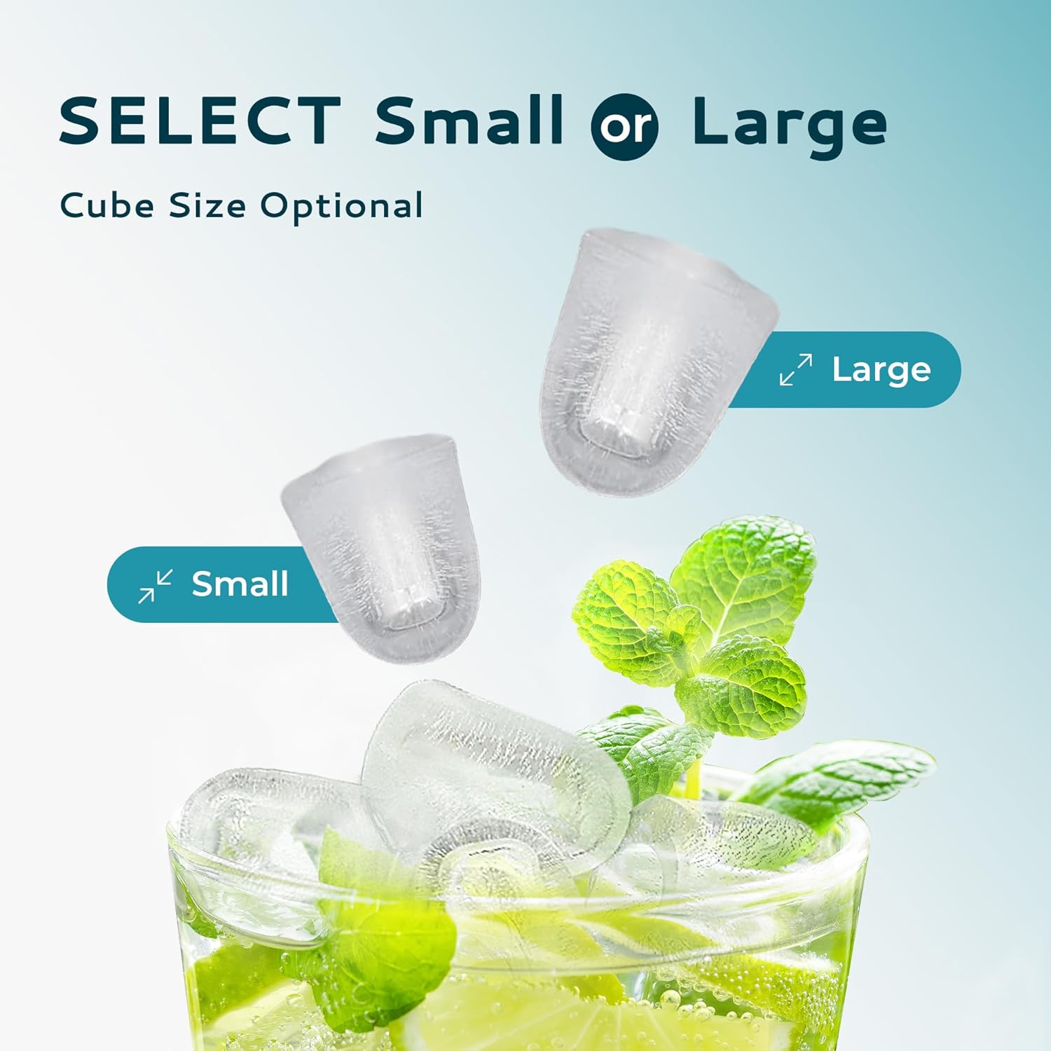 【Customizable Ice Thickness】EUHOMY Ice Maker introduces a new upgrade—choose ice cube size with a touch of a button. Select “Large” for thicker bullet ice that keeps your drinks refreshingly cold for longer. Opt for “Small” for regular bullet ice, allowing for quicker and more efficient ice making. Customize your ice cubes according to your needs and step into a new era of ice-making.