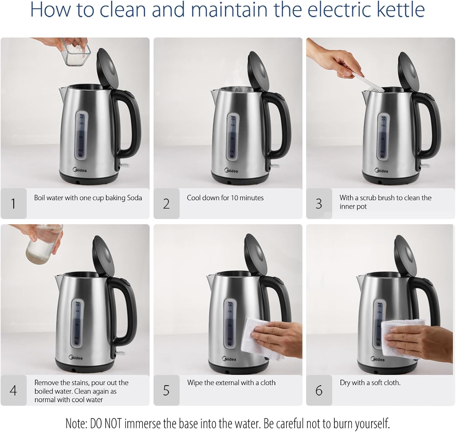 【Easy to clean】Thanks to the wide opening, the black matt kettle is easy to fill and clean. White vinegar, baking soda, water, a bottle brush and a microfiber cloth can be used for cleaning and maintenance.