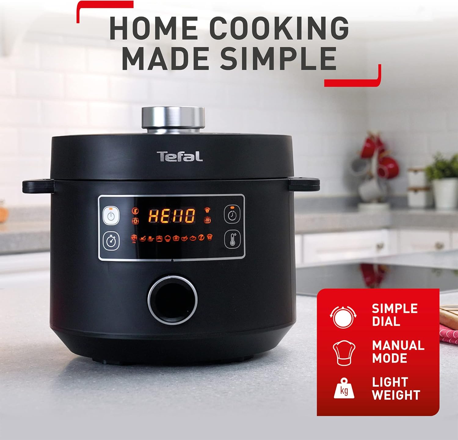Tefal Turbo Cuisine Electric Pressure Cooker – 10-in-1 Multi-Cooker, 4.8L Capacity, 1000W Power, 10 Automatic Programs (Stew, Steam, Bake, Slow Cook, Rice Cooker & More), Black, CY754840