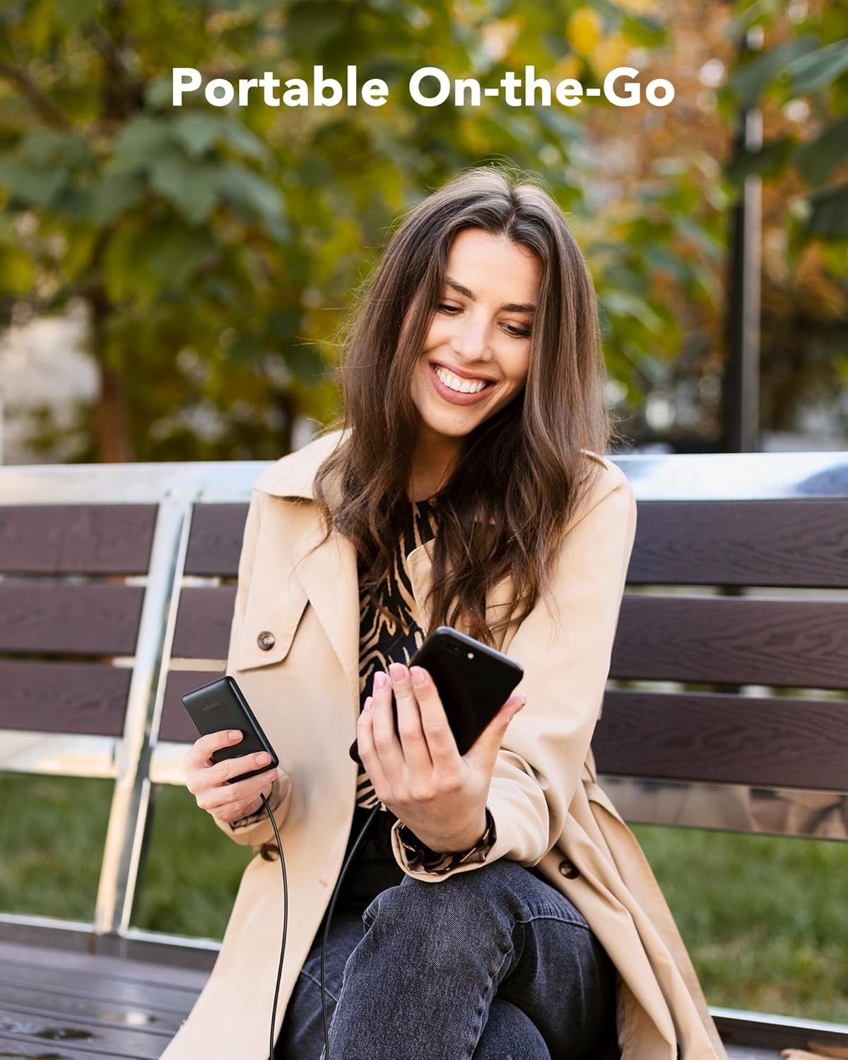 【Power Bank Fast Charging】Dual PD 3.0 and QC 3.0,Charges twice as fast. 22.5W power bank can incredibly fast fuel your Phone from 0 to 65% in 30mins, 3X faster than traditional 2.4A chargers.